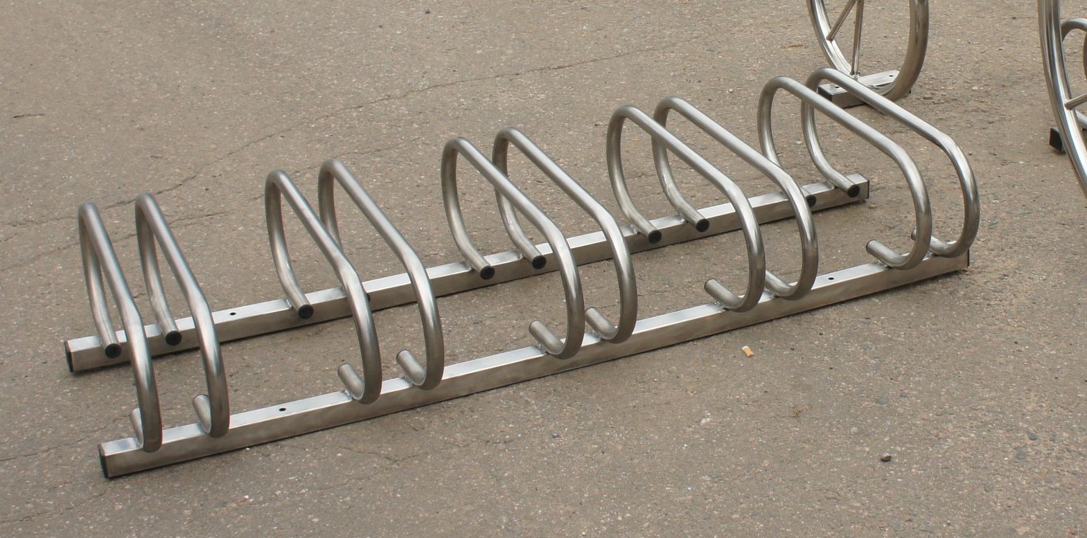 Очень удачная модель велопарковки на 5 велосипедов. Позволяет размещать велосипеды как в одностороннем, так и в двухстороннем порядке.